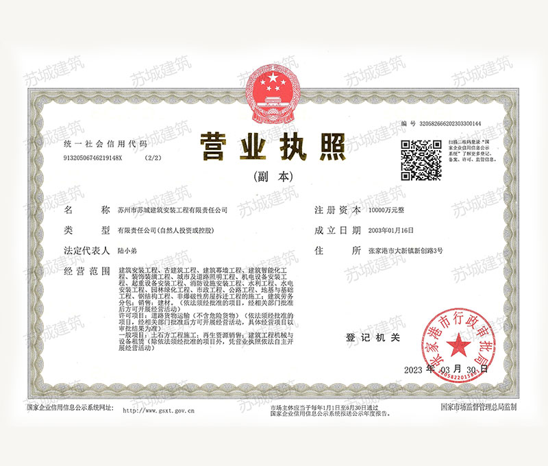蘇州市蘇城建筑安裝工程有限責(zé)任公司,擁有主項建筑工程施工總承包一級資質(zhì),增項市政公用工程施工總承包二級資質(zhì)和建筑裝修